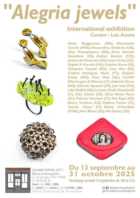 Dans le cadre de l'événement annuel Parcours Bijoux, les œuvres de Polina Dimitrova et Adriana Diaz ont été présentées au public par Sophie dans sa Galerie du 11e arrondissement.
